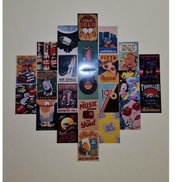 Hiasan dinding kamar dengan poster atau majalah bekas.